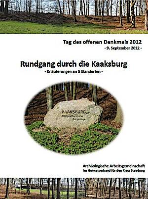 Was verbirgt sich hinter diesem Namen, der auf eine alte Wehranlage hinzuweisen scheint? Ein erster Anhaltspunkt ist der baumbestandene, von der Landesstraße durchschnittene Ringwall, der zwischen der Bekau-Brücke und der Tankstelle liegt. Ein Denkmalstein und ein Denkmalsschild weisen auf die Kaaksburg hin, eine Tafel des Archäologischen Landesamtes gibt erste Informationen.